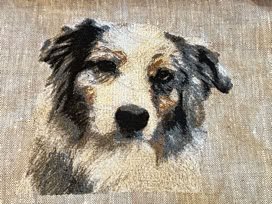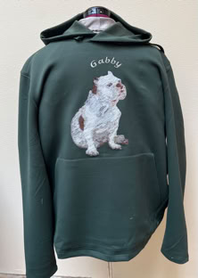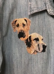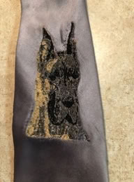 The following series of pages show some of the custom projects. This part of our or offerings began with doing portraits of AKC show dogs on various clothing items such as ties, shirts, and jackets.